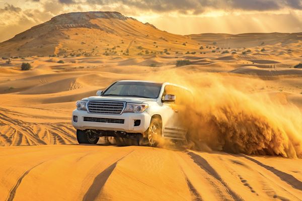 16h30: Đoàn chính thức bước vào cuộc hành trình khám phá Sa Mạc, tham gia cuộc dạo chơi đua xe Landcruiser tốc độ trên các cồn cát vàng của Safari để cảm nhận sự thú vị và ấn tượng. Chụp ảnh cảnh hoàng hôn trên Sa mạc.