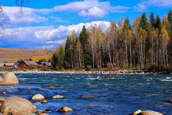 Làng Hemu (làng Hòa Mộc): là một làng được bộ Nông Nghiệp Trung Quốc đánh giá là một trong mười ngôi làng đáng sống và có sức hấp dẫn nhất Trung Quốc. Và đây là ngôi làng duy nhất ở Tân Cương giành được vinh dự này. “được mệnh danh là ngôi làng số 1 Trung Quốc” làng Hemu là nơi sinh sống tập trung của người Tuva và là ngôi làng lớn nhất trong số 3 ngôi làng Tuva duy nhất còn lại( làng Hemu, làng Kanas và làng Baihaba) với tổng diện tích là 3040km2. Những ngôi nhà ở đây đều được làm bằng gỗ, mang phong cách truyền thống cổ xưa. Làng Hemu nổi tiếng nhất với sắc thu đỏ rực màu lá (hồng diệp) say đắm lòng người trải khắp núi Vạn Sơn, khói từ những ngôi nhà nấu nướng chậm rãi bốc lên trong sương sớm mùa thu, tạo ra những làn khói đẹp như mơ, một chốn bồng lai tiên cảnh.