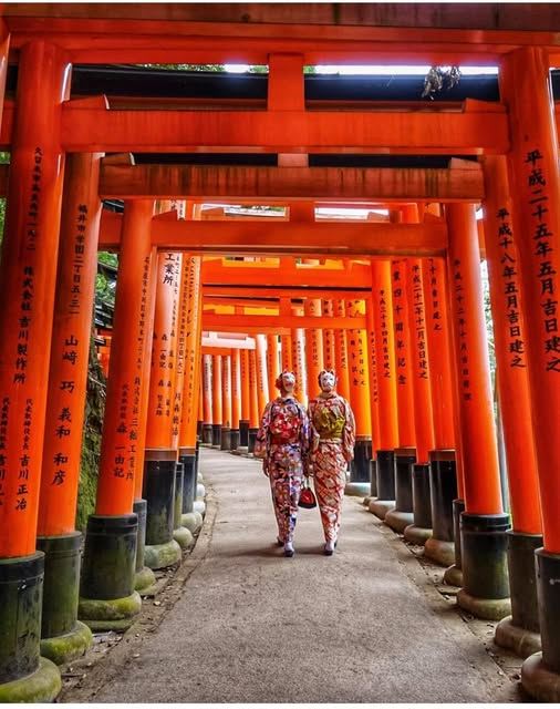 Đền Fushimi Inari (đền 1000 cột) thờ phụng Inari – vị thần phù hộ cho mùa màng bội thu và kinh doanh phát đạt. Con đường với những cánh cổng Torii màu cam rực rỡ dường như vô tận chạy dọc lên núi Inari tạo nên một khung cảnh ấn tượng và là một trong những hình ảnh nổi tiếng nhật Nhật Bản.