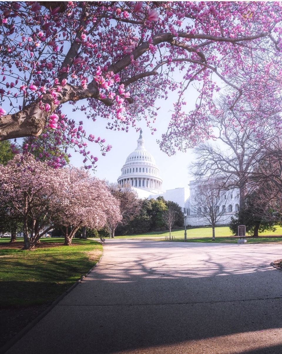 o Thủ đô Washington D.C với Nhà trắng, Quốc hội, Lầu năm góc, các bảo tàng nổi tiếng. Ghé thăm Washington DC trong thời gian này và bạn sẽ thấy thủ đô của nước Mỹ được tô lên một màu hồng tuyệt đẹp và lãng mạn, và đặc biệt là lễ hội Hoa anh đào Hoa Kỳ diễn ra vào cuối tháng 3 đến đầu tháng 4 hằng năm.