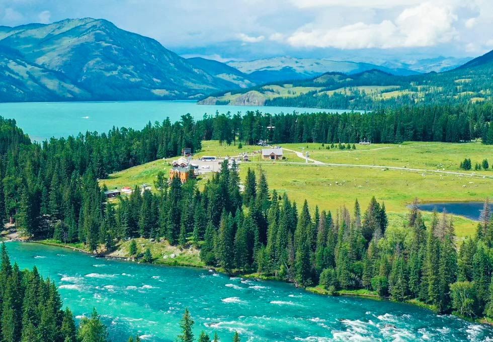 Khu thắng cảnh bảo tồn thiên nhiên Kanas (bao gồm xe buýt đưa đón): Kanas, theo tiếng Mông Cổ, có nghĩa là "đẹp, giàu có và bí ẩn", hồ nằm ở độ cao 1374 mét so với mực nước biển, là một hồ trên núi cao nằm trong khu rừng rậm của dãy núi Altai. Hồ đầy sóng xanh, các đỉnh núi được phản chiếu và màu sắc của hồ thay đổi theo sự thay đổi của các mùa và thời tiết, là một "hồ thay đổi màu sắc" nổi tiếng. Hồ Kanas có hình trăng lưỡi liềm, bờ phía đông của hồ là mặt trong của trăng lưỡi liềm, dọc theo bờ biển có 6 thềm nhô ra phía tâm hồ tạo thành 6 vịnh rất đẹp. Mỗi vịnh có một truyền thuyết kỳ diệu. Đây là nơi nghỉ dưỡng cho những người yêu nhiếp ảnh, từ xuân sang thu, từ sáng sớm đến chiều tối, dưới những tác động khí hậu và ánh sáng khác nhau, mặt hồ không ngừng thay đổi diện mạo huyền bí và quyến rũ, mang đến cho những người yêu nhiếp ảnh những tác phẩm nghệ thuật tuyệt sắc.
