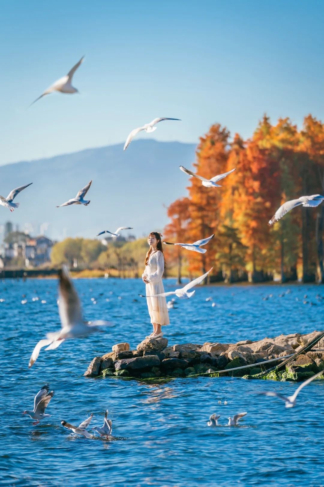 Hồ Điền Trì - còn được biết đến với biệt danh "Viên Minh Châu" vì sự long lanh của nó trên cao nguyên, là nguồn cảm hứng cho hồ Côn Minh tại Di Hòa Viên ở Bắc Kinh. Từ lâu, Hồ Điền Trì là một trong những nơi tuyệt vời nhất để đến nghỉ dưỡng mùa hè. Thời điểm hấp dẫn nhất ở hồ Điền Trì vẫn là mùa đông. Khi cái lạnh tràn ngập khắp hành tinh, vùng Siberi của Nga băng tuyết trắng xóa, cũng là lúc đàn chim hải âu bắt đầu cuộc hành trình cả vạn cây số từ Siberi đến hồ Điền Trì nằm sâu trong lục địa để tránh những cơn gió lạnh buốt.