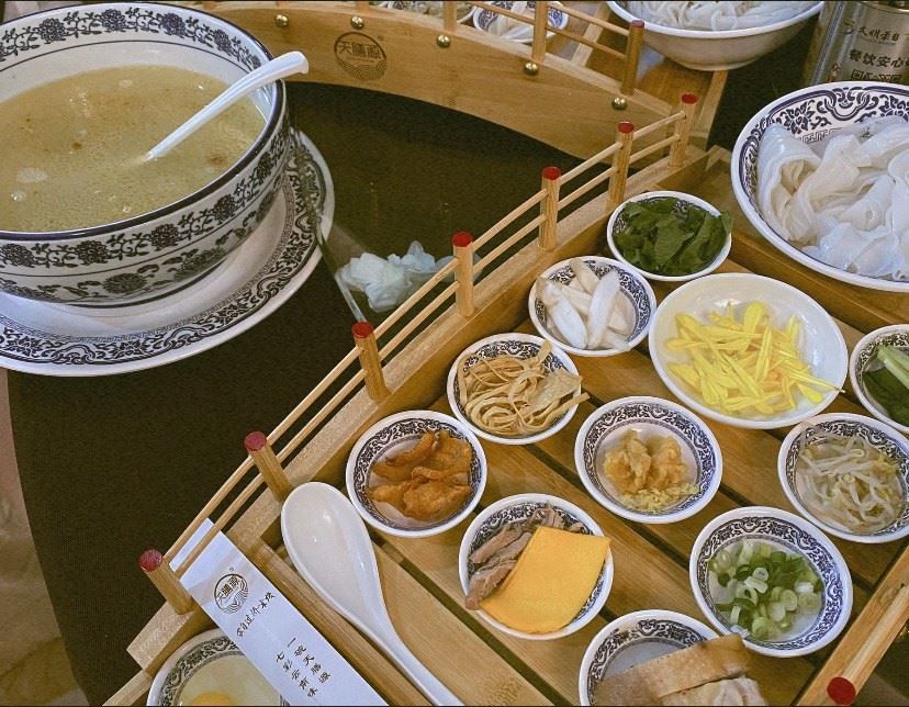 Trưa Sau khi tham quan mua sắm, đoàn di chuyển đến nhà hàng thưởng thức món Bún Qua Cầu - đặc sản của Mông Tự.