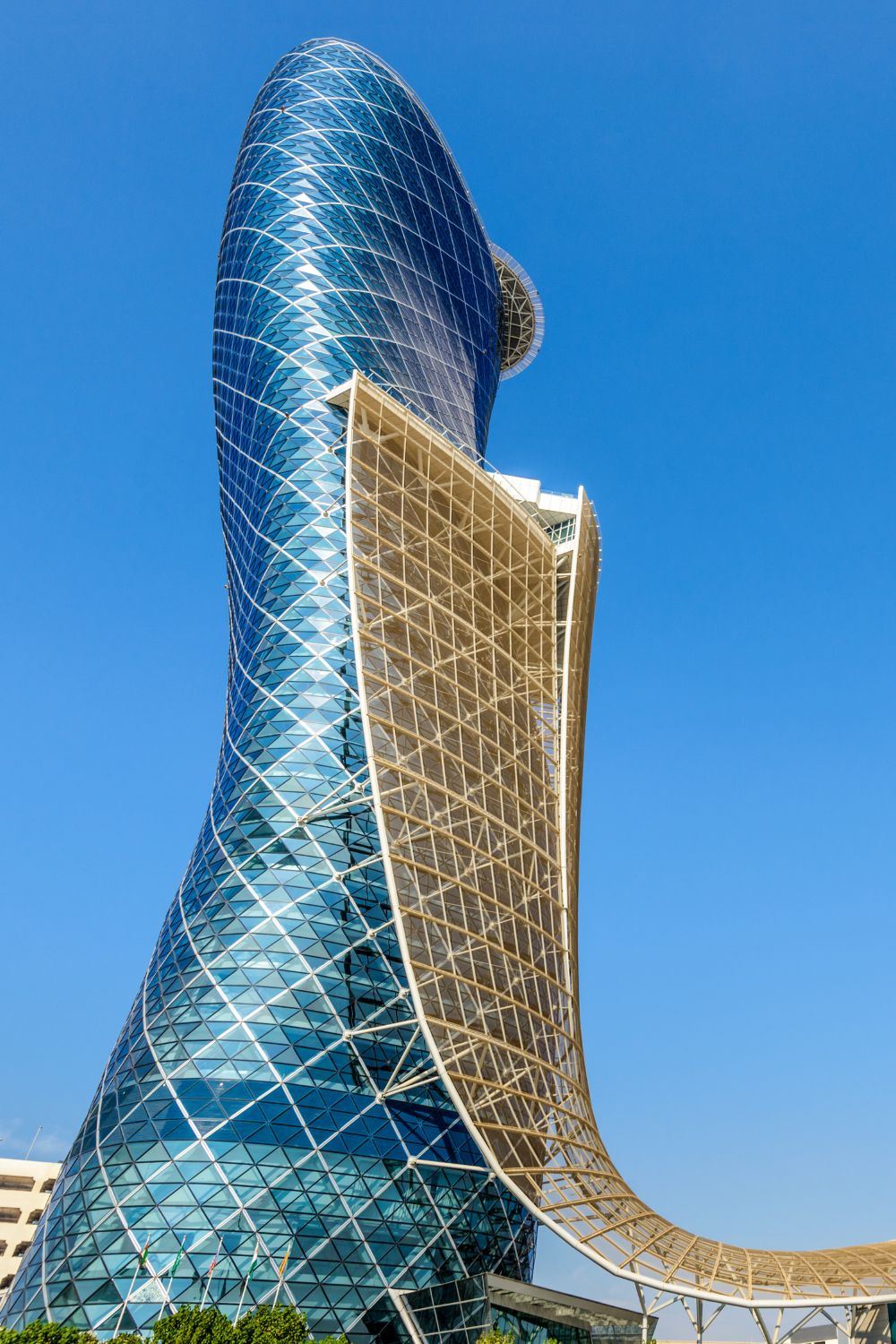 Chụp hình với Tháp Capital Gate – AbuDhabi - Tòa tháp đáng kinh ngạc này được xem như là "công trình kiến trúc nhân tạo có độ nghiêng xa nhất của thế giới" đã từng được xây dựng. Danh hiệu này đã được xác nhận bởi sách kỷ lục Guinness thế giới vào tháng 6 năm 2010.