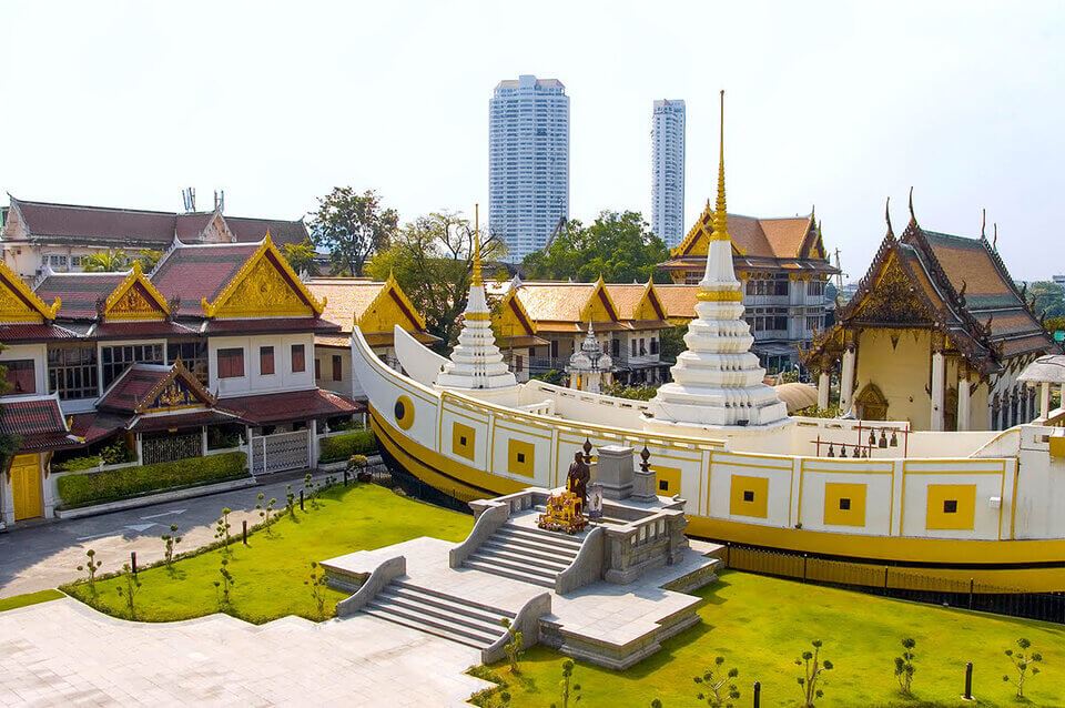Viếng Chùa Thuyền - Wat Yannawa: Hình dáng chùa được xây dựng theo hình dáng con thuyền của người Trung Hoa kết hợp với các tầng mái cao vút mang đậm kiến trúc Ayuthaya. Nơi đây được biết tới là ngôi chùa còn lưu giữ nhiều xá lợi nhất Thái Lan.