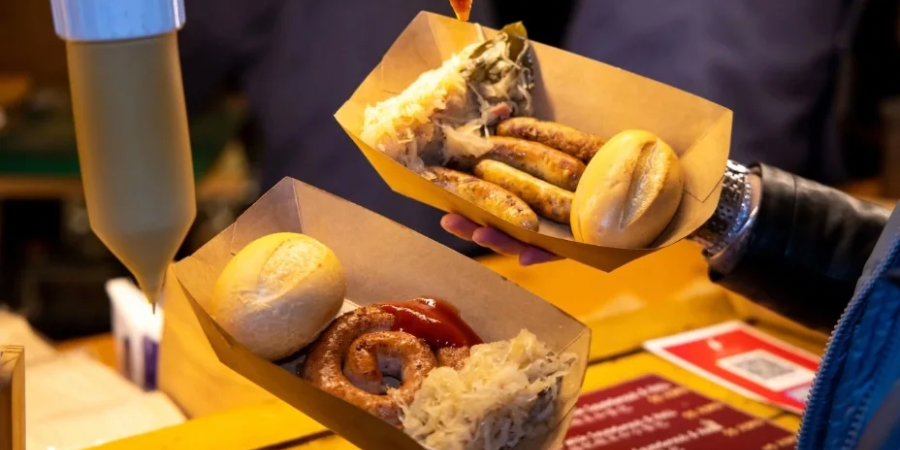 Nếu bạn yêu đồ ăn, Chợ Giáng Sinh Thượng Hải sẽ khiến bạn vui từ chiếc bánh đầu tiên. Khu ẩm thực là sự kết hợp giữa hương vị Âu Mỹ với sự ấm nóng đặc trưng của mùa đông. Xúc xích Đức, bò nướng Chile, burger và taco Mexico là những món mặn được yêu thích, đặc biệt phù hợp để ăn khi vừa đi vừa ngắm cảnh…. bao la là đồ Âu kết hợp.