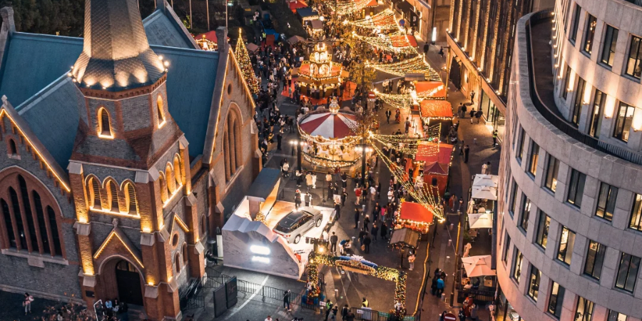 Một buổi tối lạnh nhẹ, ánh đèn vàng phủ lên những mái nhà gỗ, tay cầm ly vang nóng còn nghi ngút khói và nhạc Giáng sinh vang bên cạnh. Chợ Giáng Sinh Thượng Hải mang đến cảm giác tròn đầy như vậy. Chỉ cần bước vào, bạn sẽ ngay lập tức thấy mùa đông trở nên đặc biệt hơn bao giờ hết!